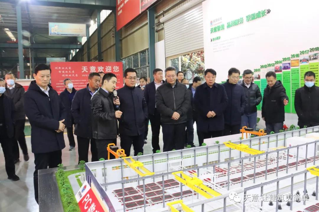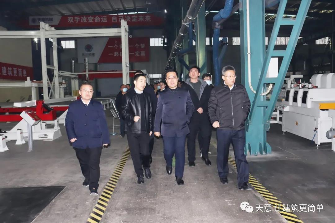 12月19日下午,嘉祥縣委副書記江峰一行蒞臨天意機械考察全市新舊動能轉(zhuǎn)換現(xiàn)場觀摩項目——裝配式建筑自動化PC生產(chǎn)線項目。兗州區(qū)區(qū)委副書記寇寧,發(fā)展和改革局副局長劉守全,天意機械總經(jīng)理劉海龍等領(lǐng)導(dǎo)陪同考察。